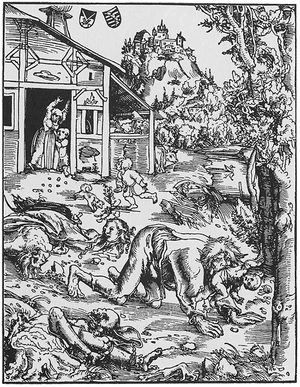 Ця гравюра по дереву, яку в XVI столітті створив один із видатних митців німецького Ренесансу, демонструє глядачам перевертня, що тероризував німецькі селища близько 500 років тому. Дикун, що повзає на своїх чотирьох, вийшов із лісу задля полювання на людей.